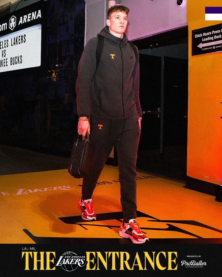 2025-03-21 11:29:24湖人众将入场穿搭:文森特墨镜配项链 布朗尼蜘蛛连帽衫