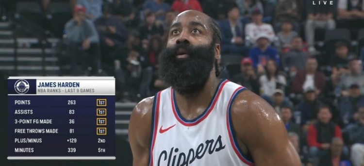 2025-03-24 14:42:30挺全面!哈登打满首节拿到7分4板4助 正负值+10