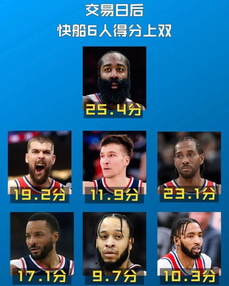 而进攻端,算上场均9.7分的科菲,快船可以视为有接近7人场均得分上双。所以莱纳德会讲:“我们现在每晚都有不同的球员可以接管比赛,不论是谁作为主攻点,我们都能够互相合作。”