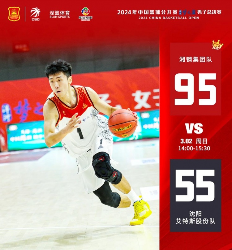 上半场,湘钢集团以一波7-0开局,打乱了艾特斯股份的进攻节奏。落后的艾特斯股份投篮命中率不高,湘钢集团趁势以15-5拉开比分差距。半场结束,湘钢集团47-30领先艾特斯股份。下半场,湘钢集团内线强攻和外线投射相结合。艾特斯股份在落后的情况下失误增多,湘钢集团进一步将分差拉开至29分。最终,湘钢集团95-55战胜艾特斯股份。