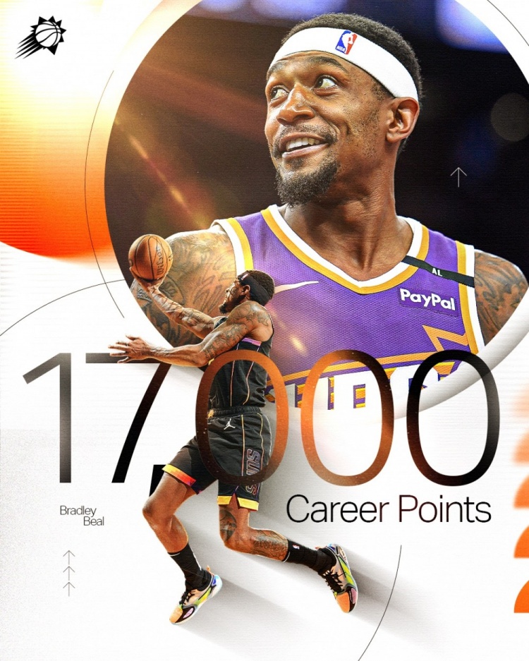 2025-02-21 17:48:19小里程碑走一个!比尔生涯总得分跨过17000分大关