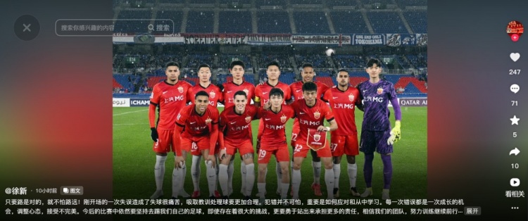 3月13日讯 海港球员徐新更新社媒,谈到了自己亚冠的表现。