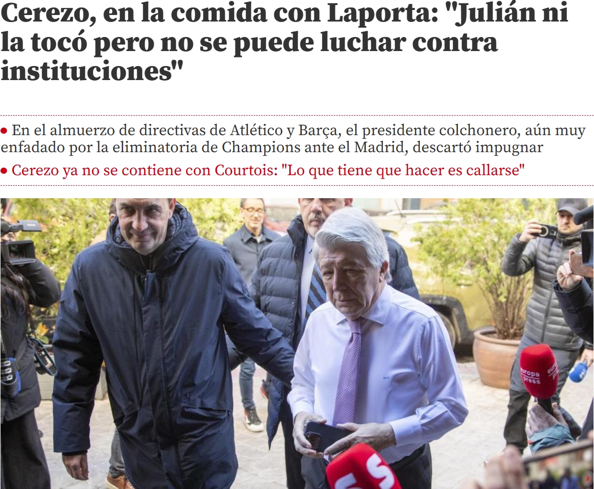 马竞主席塞雷佐再次谈到了周中欧冠阿尔瓦雷斯被判无效的点球,塞雷佐斩钉截铁地表示这球应算有效。