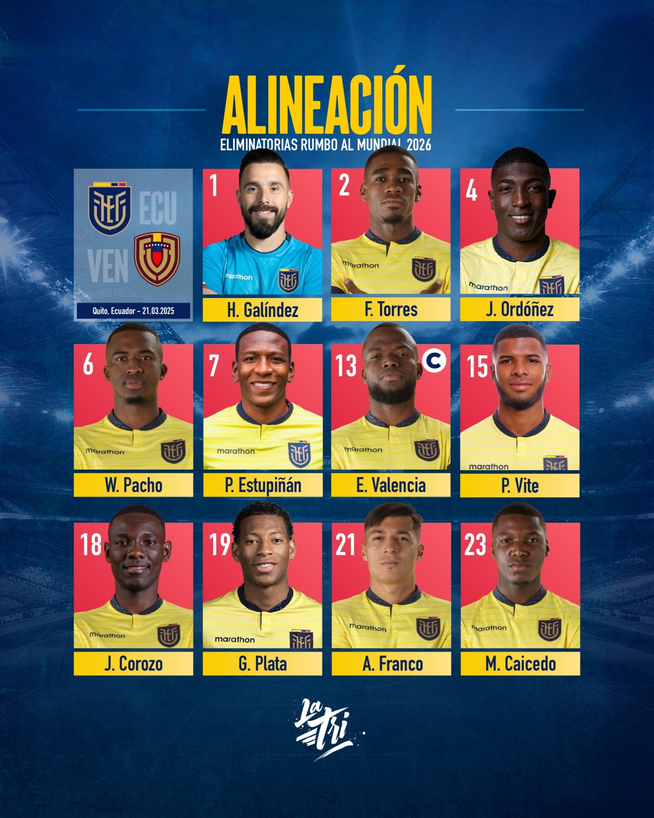 2025-03-22 10:10:48厄瓜多尔vs委内瑞拉首发:凯塞多、埃斯图皮尼安、帕乔先发