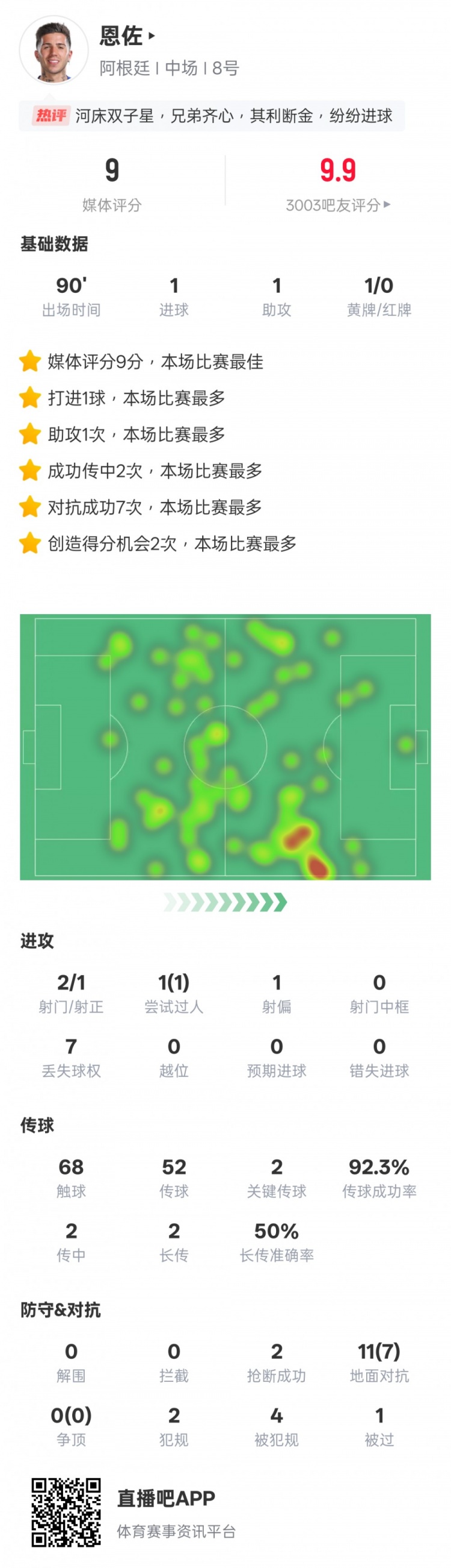 2025-03-26 20:41:00恩佐本场数据:传射建功+2关键传球,评分9.0全场最高