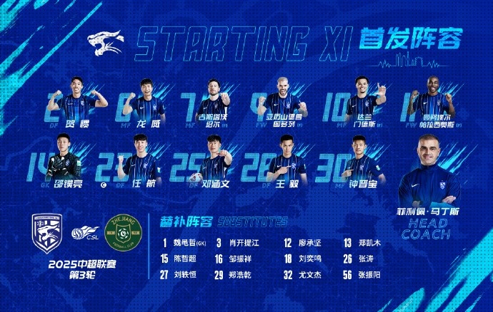 2025-03-28 19:26:33武汉三镇队首发及替补球员名单出炉,赛季主场首战