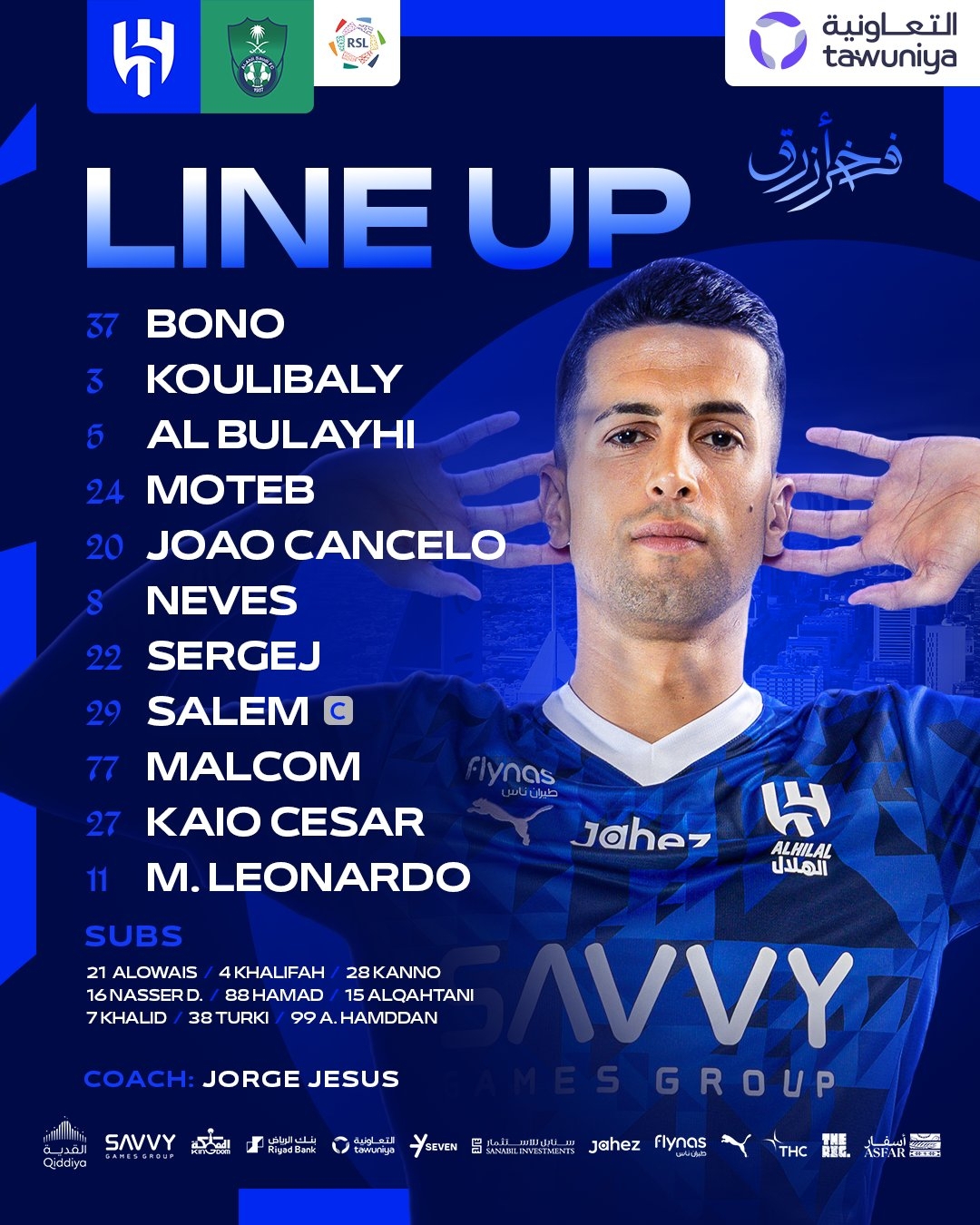 2025-03-01 08:04:56利雅得新月联赛首发:坎塞洛、内维斯、米林科维奇、马尔科姆先发