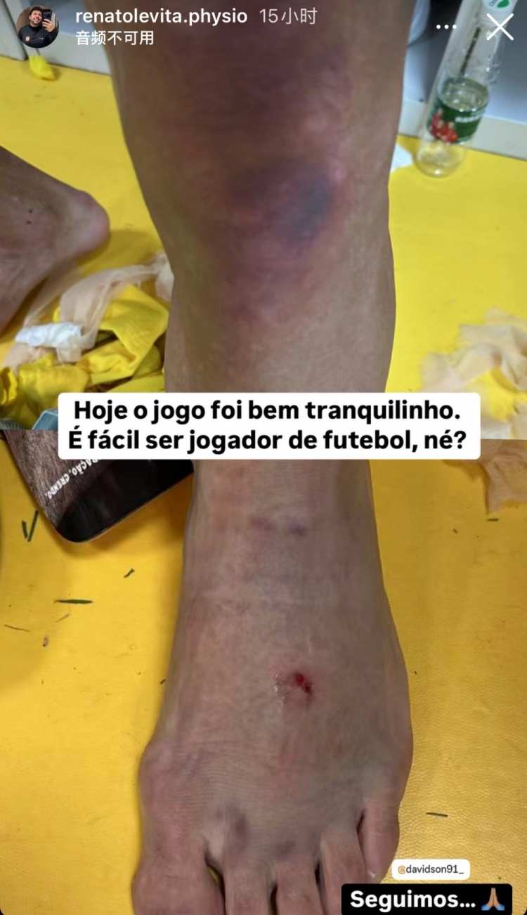 2025-03-04 20:36:39西海岸理疗师晒戴维森腿部伤势照:当足球运动员很容易,对吧?