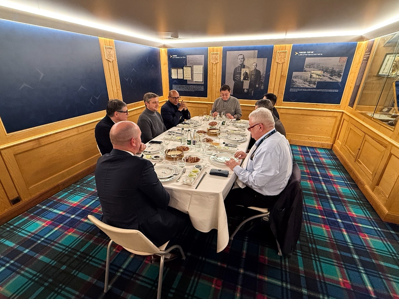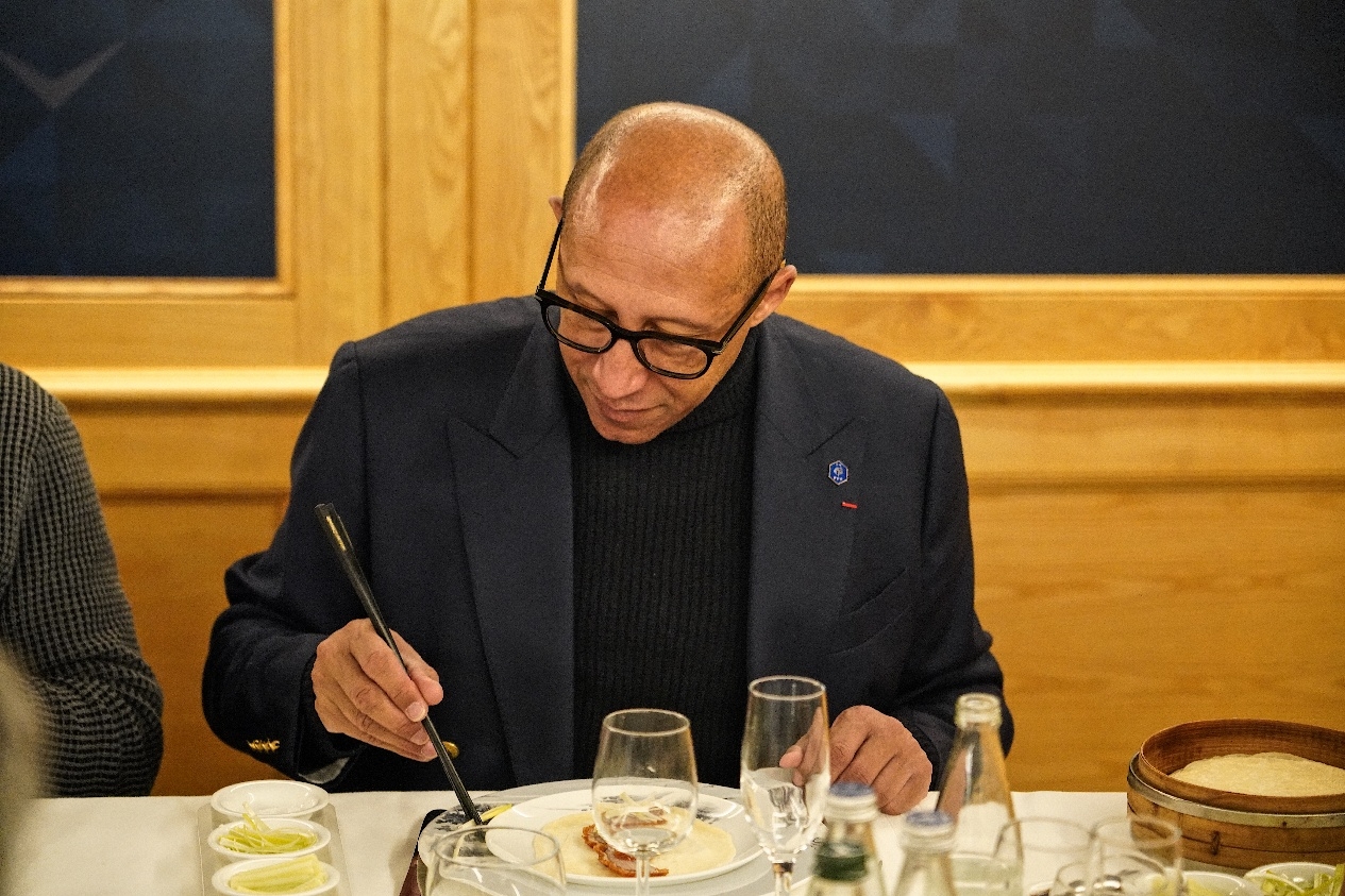会面结束后,周云杰先生邀请迪亚洛主席一同共进午餐。一同出席午宴的重要成员还有欧塞尔市长马劳、斯特拉斯堡主席马克-凯勒和足协领导小组成员帕朗。本次午宴特别邀请了波尔多全聚德的主厨操刀制作烤鸭,希望各位客人可以在法国品尝到地道的中国美食和文化。