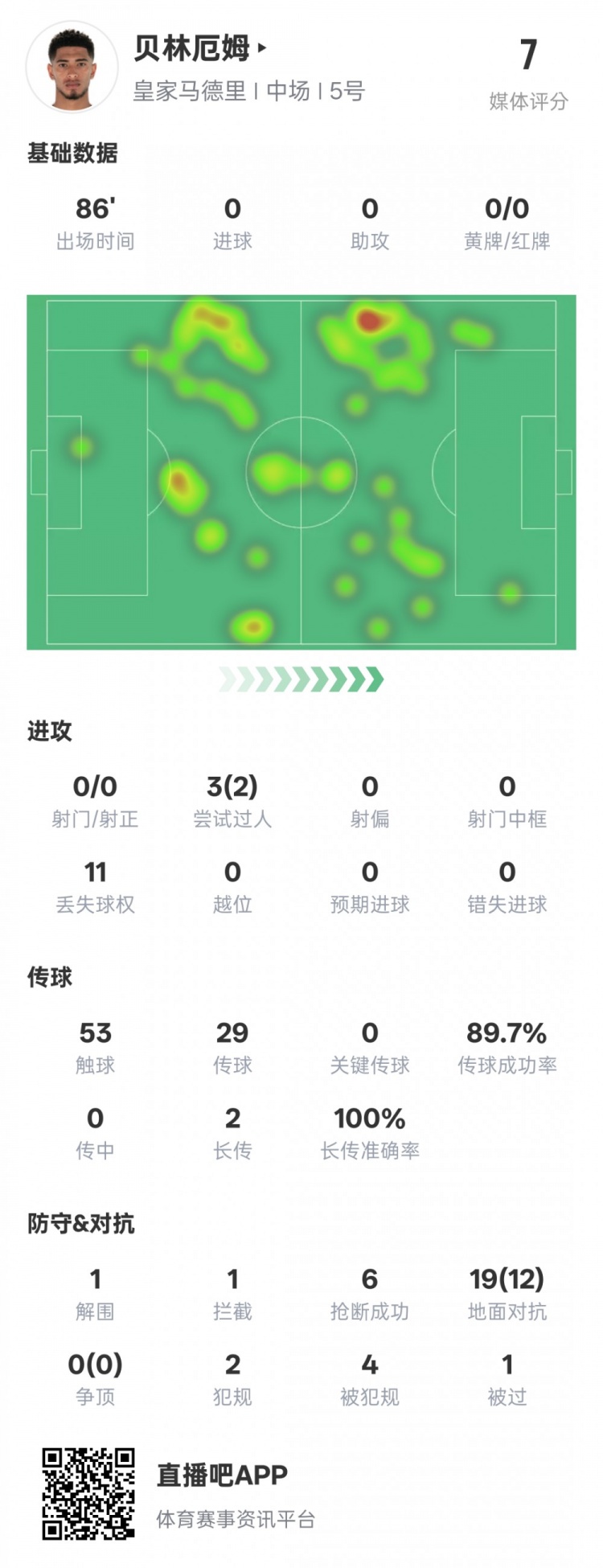 2025-03-10 06:01:32贝林厄姆本场数据:12次地面对抗成功2过人成功6抢断,评分7.0